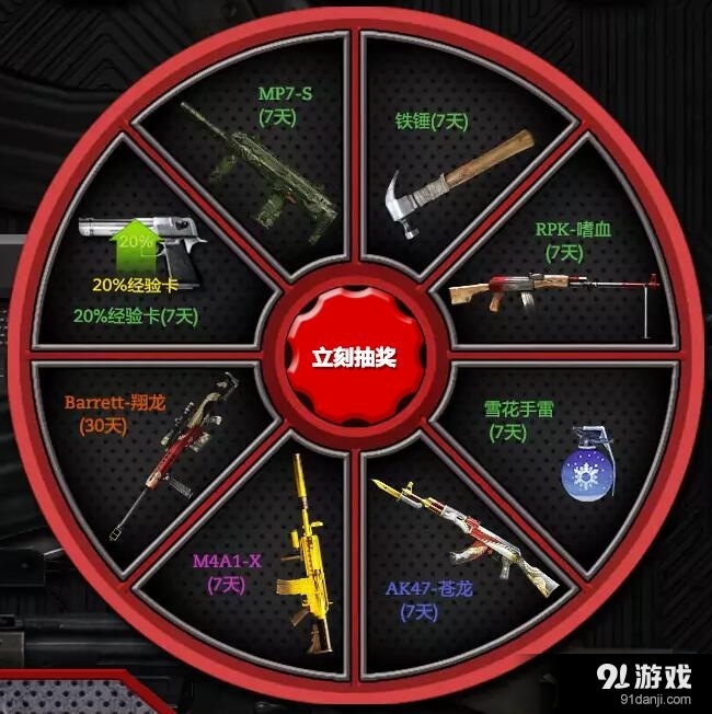3、玩家完成下列1项任务即可获得1张抽奖券,每次抽奖可随机获得1件道具,每次抽奖消耗1张抽奖券,所得道具直接发送到游戏仓库。
